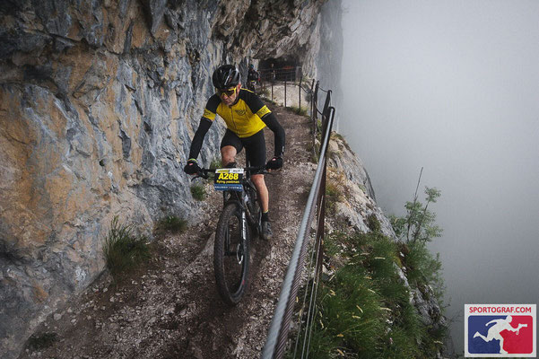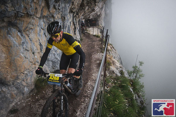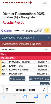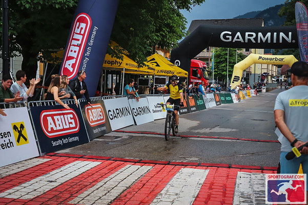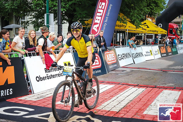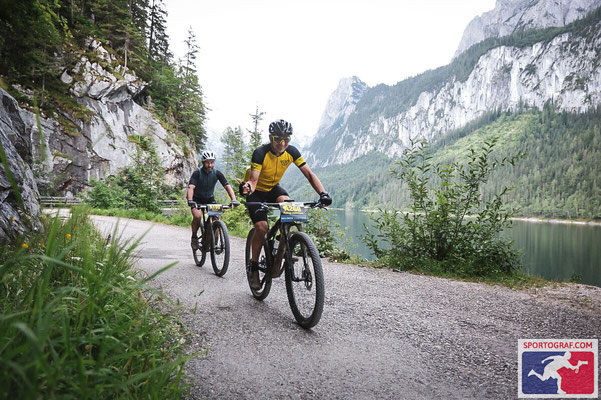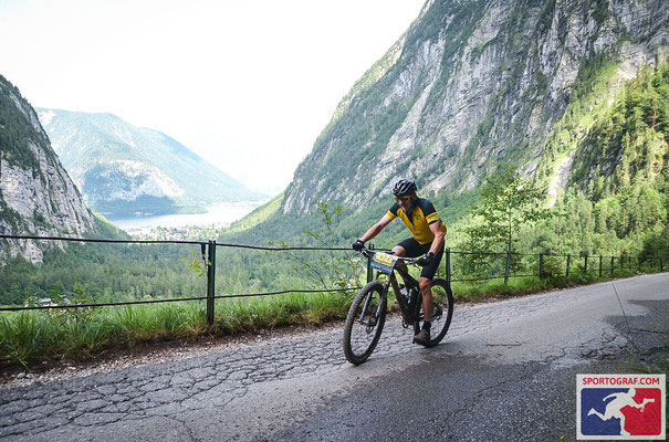 Von den Endorphinen getragen, ging es Richtung Raschberg, wo 1000 Hm am Stück abzuarbeiten waren. Dann folgten Hütteneckalm und „Ewige Wand“. Bei Weißenbach fand das erste Zeitlimit um 08:30 Uhr statt. Mit guten Beinen und 35 Minuten im Plus ging es Richtung Hochmuth weiter und danach hinauf mit Abzweigung nach Altaussee, wo der erste richtige giftige Anstieg auf den Salzberg wartete. Die ersten Krämpfe in den Beinen klopften an und ich nahm schon Magnesium zu mir. Danach führte uns die Strecke nach Bad Ischl, wo es auch einen Salzberg gab. Bei der nächsten Karenzzeit war ich schon eine Stunde im Plus. Die flache Überfahrt nach Hallstatt war ziemlich unspektakulär. Dieses Jahr wurde die Seilbahn am Hallstätter Salzberg restauriert, weshalb die Kehren heuer nicht gefahren wurden und es somit direkt von Hallstatt aus auf die Rossalm ging. Am Anfang waren es noch 20% bis 25 % Steigung, später etwas gnädiger, jedoch hatten wir aber schon 150 km in den Beinen. In der Zwischenzeit spielte mein Magen auch schon verrückt und ich konnte nichts mehr essen. Essiggurkerl und Salz erwiesen sich als Rettung für meine Krämpfe. Von der Rossalm bis ins Ziel konnte ich etliche Fahrer überholen und wurde selbst nicht mehr überholt. Es war, als wenn ich einen frischen Akku bekommen hätte. Von einem unglaublichen Flow getrieben, jagte ich die letzten 30 km in Richtung Ziel. Mittlerweile 90 Minuten im Plus, wusste ich, dass nur mehr ein technischer Defekt ein erfolgreiches Finishen vereiteln könnte. Doch das Bike und meine Beine funktionierten einwandfrei. Die mentale Komponente sollte man auch nicht bei so einer Distanz unterschätzen. Einige Male stellt man sich während des Rennens die Frage nach dem „Warum“. Kurz vor dem Ziel war noch ein Sprint drin und konnte ich noch zwei Fahrer absprinten. Überglücklich überquerte ich nach 14:25 Stunden die Ziellinie in Bad Goisern, wo meine Schwester schon auf mich wartete. Zusammen tranken wir noch einige Biere zur kurzfristigen Regeneration und dann gingen wir wieder Richtung Appartement. Dort warteten schon einige Freunde auf mich, die allesamt auf der B-Strecke starteten. Abschließend möchte ich noch sagen, dass alle die die A-Strecke finishten, Helden sind. Die Siegerzeit war 09:09 Stunden, über 5 Stunden schneller als meine Gesamtzeit, einfach unglaublich.